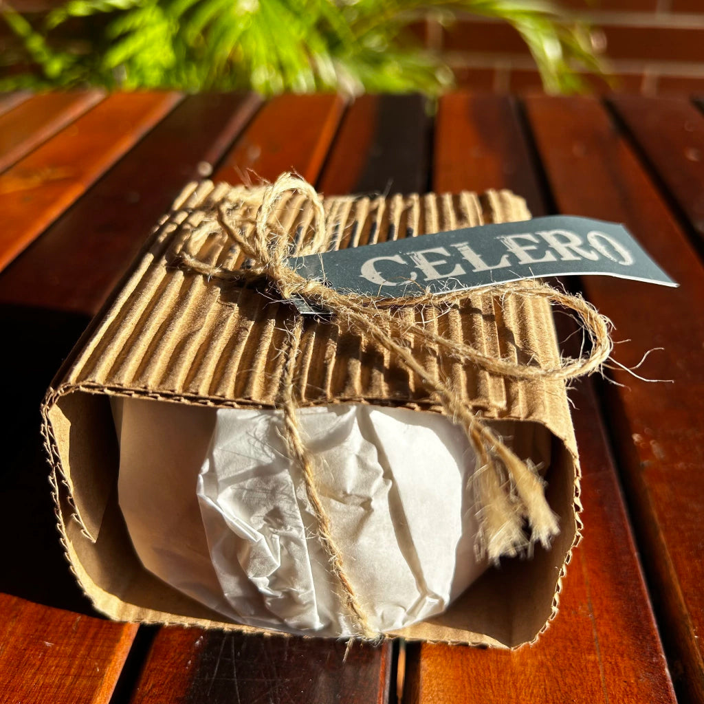 Desperte seus sentidos com o Queijo Celero, uma obra-prima artesanal com casca mofada e massa macia. De sabor amanteigado e lático, sua experiência sensorial se completa com um retrogosto sutilmente floral e cítrico, embalado em nuances amoniacais. Produzido com leite cru e envelhecido por 21 dias na caverna da fazenda em Passos, MG. Uma verdadeira celebração do terroir brasileiro.